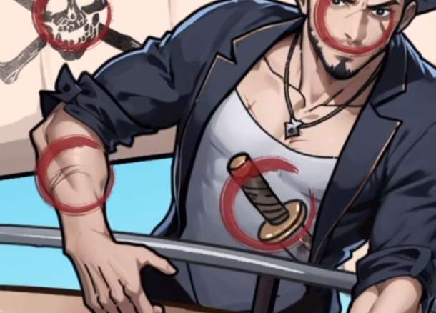 2、接着到下一个画面,点击船帆、长相、疤痕、麻绳、弯刀。