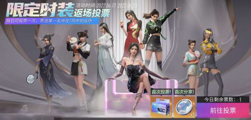 -『时装返场投票』将于6月17日-6月23日开启。八款精美时装,你最心动的是哪一款呢?快来参与投票吧!
