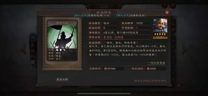 绝地反击在目前已有的s战法中效果也是比较突出的,无论是其武力加持还是五回合固伤。在很多队伍中都是较为适用的,特别是三势蔡文姬和核弹张飞队,更是能完美发挥这个战法的全部效果。