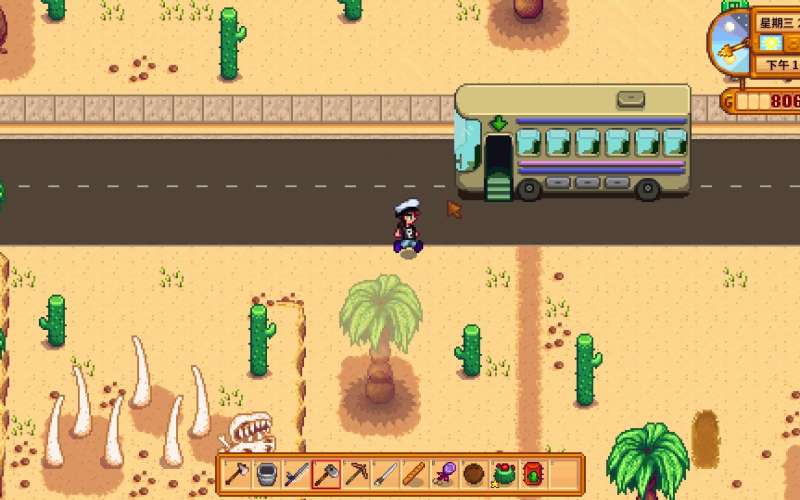 在星露谷物语中,沙漠节为期三天,在沙漠举行,修理好巴士后可以前往。看完这个描述,是不是觉得沙漠节和夜市有点像呢?确实也是如此,它也是一个开放性的节日。春季的十五到十七号分三天举行,每天上午十点开始,也是每天有一部分村民会乘车前往沙漠。