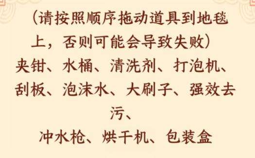 请按照顺序拖动道具到地毯上,否则可能会导致失败