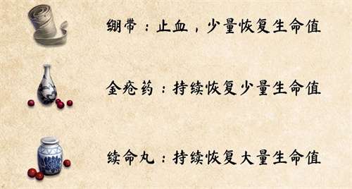 金疮药:金疮药服用时间1秒,持续恢复少量生命;