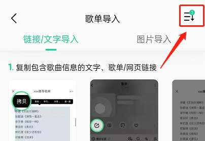 3、接着,选择任意方法导入歌单,点击右上角导入列表。