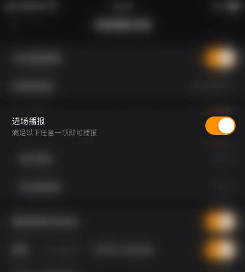 4、接着点击“进场播报”后面的圆点,如下图所示。