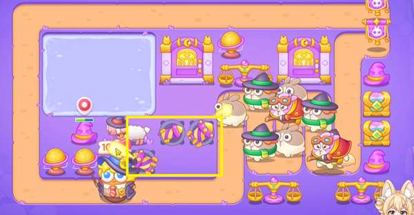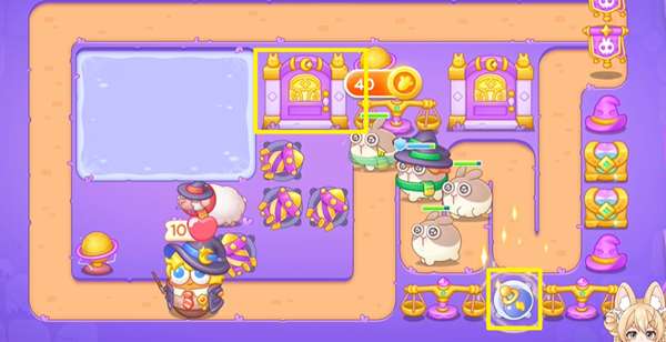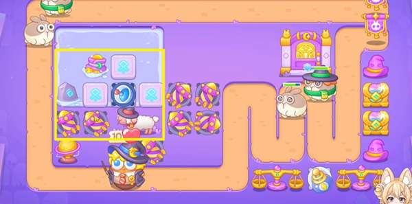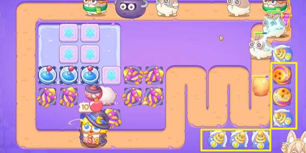 1、阿波与魔法宝藏第21关开局没有什么空的格子,我们选择在左边的区域建造火箭炮塔。