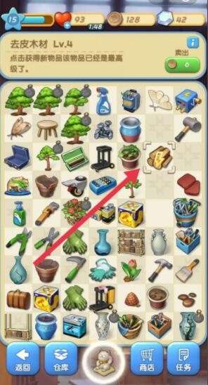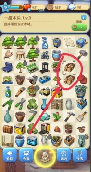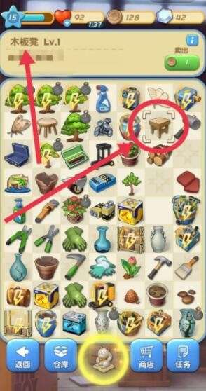 3、合成【去皮木材】后,【双击】可获得【木板凳(Lv.1)】。