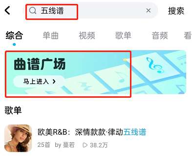 1、在酷狗音乐,直接搜索五线谱/曲谱。点击进入曲谱广场。