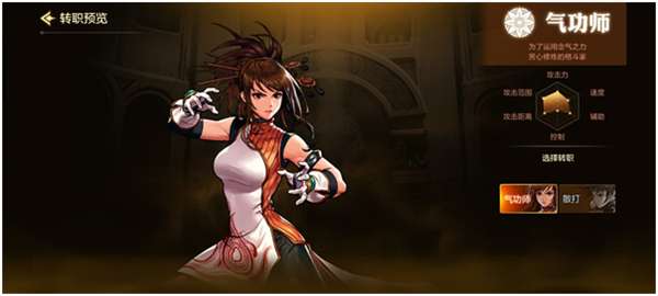 气功师是一名布甲魔法职业,在手游里的伤害并不是顶尖的,同样属于半辅半C的职业,“念兽:龙虎啸”改成了被动技能,“光之兵刃”和“金钟罩”一增攻一防御,作为辅助还是比较称职的,自带光属性攻击,前期练级很轻松。