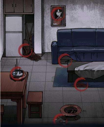 1、这一关是找诡异,场景一,点击下图所示的点: