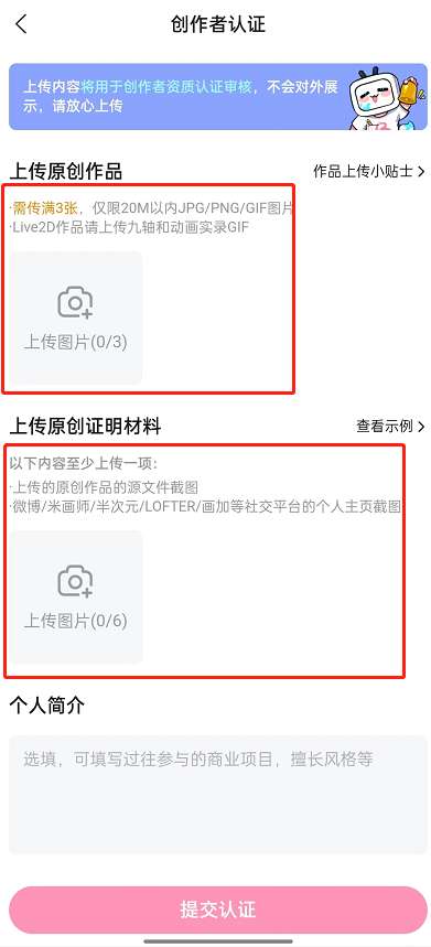 4、在创作者认证界面,根据需求提供相应材料,点击提交认证即可。
