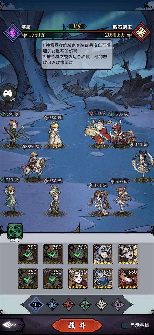 3.魔镜物语狩猎时刻6-3钻石亲王阵容,神箭罗宾的装备套装效果流血可以增加少女温蒂的伤害。