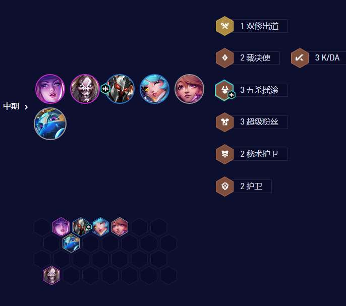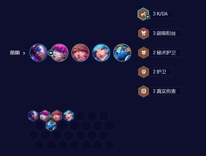 2-1升4,2-5升5,3-2升6,用3超级粉丝搭配KDA过渡。