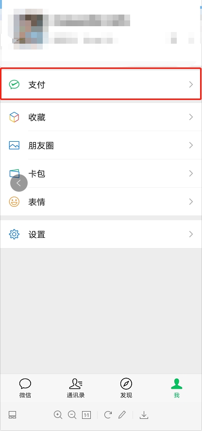 2、在“我的”页面点击进入支付一栏
