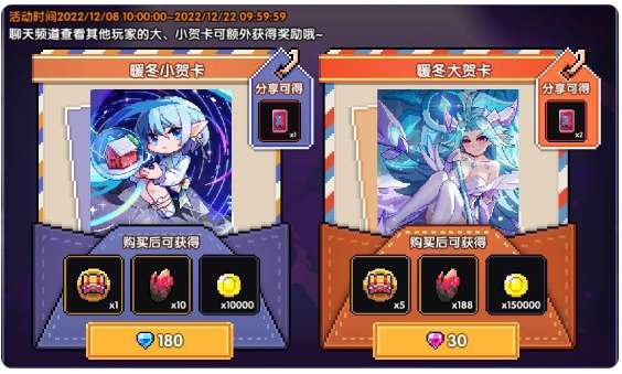 1. 活动期间,玩家可以购买贺卡领取对应的贺卡奖励。