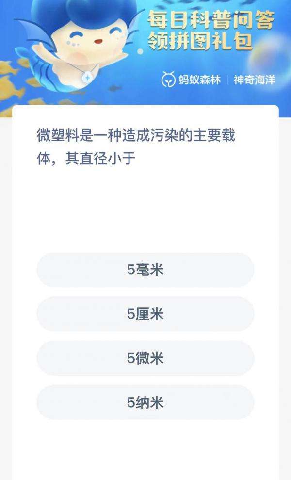 支付宝蚂蚁森林神奇海洋6月24日题目已经更新,今天的题目为:微塑料是一种造成污染的主要载体其直径小于?下面小编就为大家带来了支付宝神奇海洋6月24日答案,神奇海洋今日答案,我们一起来看看吧!