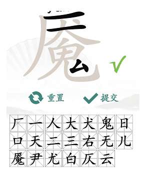3、首先我们需要把魇字拆分开来,然后再看看是哪些字组合在一起的,可以得到【厂、一、人、大、犬、鬼、日、口】。