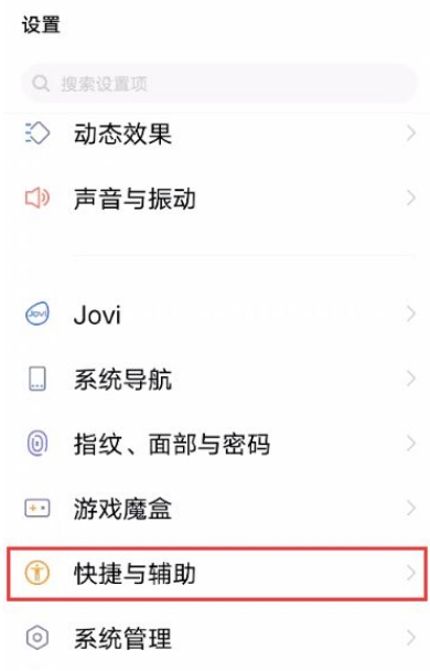 1、打开设置页面,选择快捷与辅助。