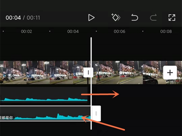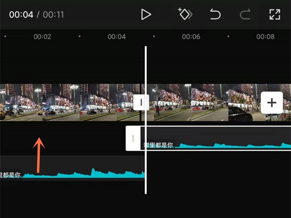 2、拖动直前一段音乐的下方。
