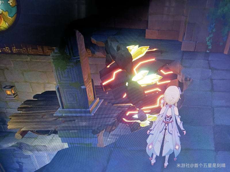 跳上来后往左走,到柱子边和柱子面对面,此时再放一个荒星,荒星的落点在最上层木板和平台之间,如图所示。