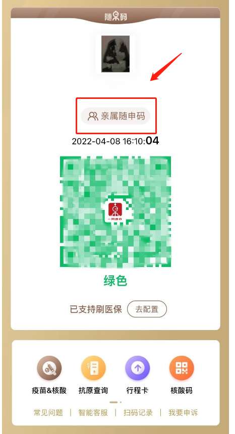 3、如果大家已经给家属申领过亲属随申码,在随申码点页面点击亲属随申码。
