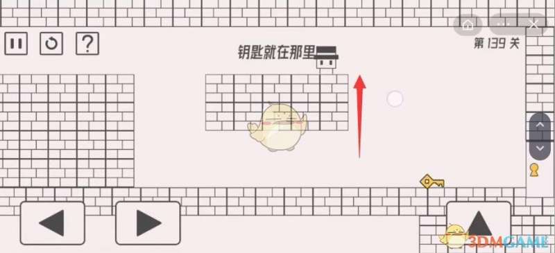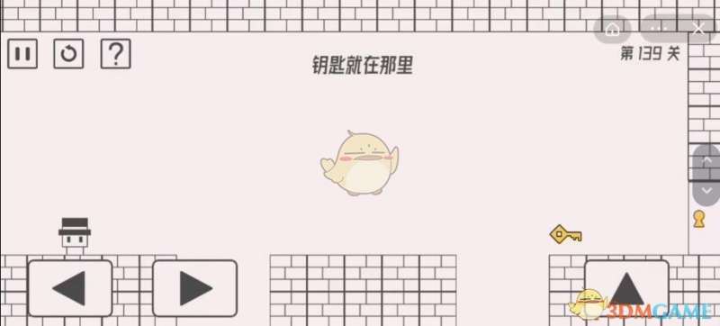 2、这一关的地面是可以动的,如图,向上移动地面,然后帽子先生跳下来去拿钥匙开门即可铜环139关了!