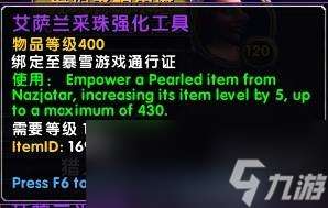 用10个“棱彩法力珍珠”可以买到艾萨兰采珠强化工具,可以将400装等的底栖装备再升级5个装等,最高430。