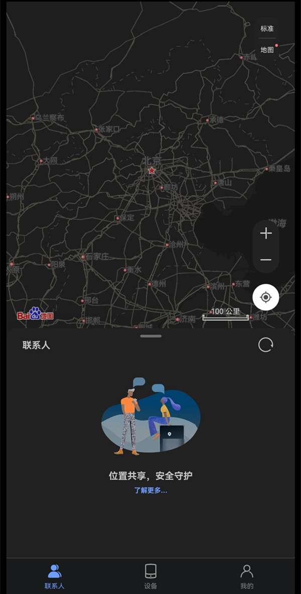 4、打开查找设备功能,在联系人界面即可找到对方。