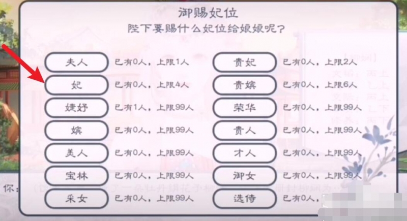 4、最后碰到喜欢的直接点击入选,并御赐妃位。