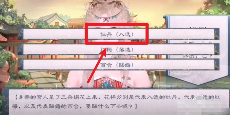 2、在游戏中到御花园,秀女等待备选;