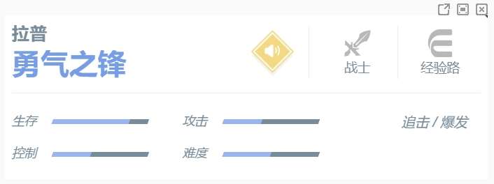 拉普拉普的技能命中会为自身增加勇气能量。当勇气能量叠满时,下次普通攻击将使自身获得护盾,并冲向敌人造成额外伤害。