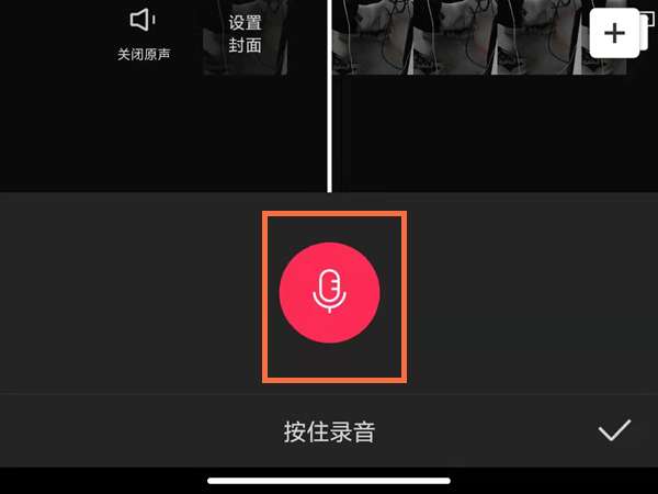 3、点击按住录音按钮,选择配音操作,录完之后,松开录制按钮,选择下方的对号即可配音成功。