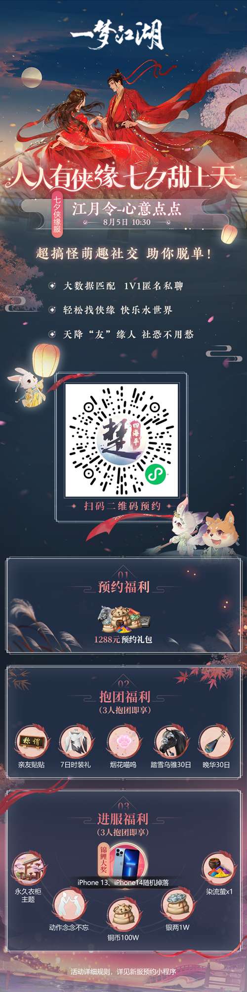 好啦~以上就是一梦江湖七夕侠缘版新版本更新的具体内容啦~8月5日新版本即将上线,你们准备好了吗~那就让我们新版本相见啦~