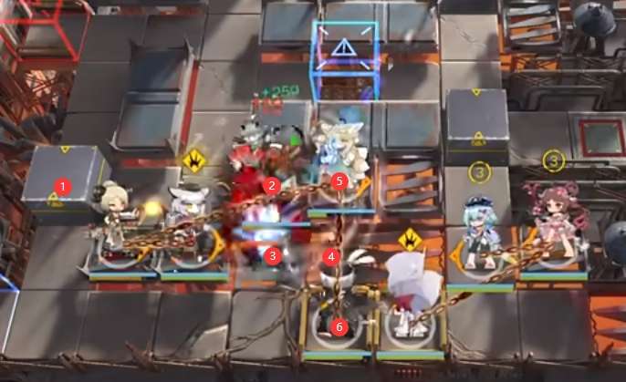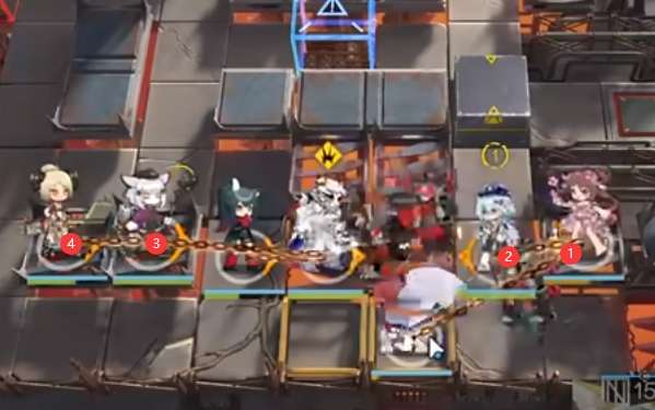 随后部署泥岩 → 撤退德克萨斯/山 → 部署铃兰(向下)→ 银灰(向上)。