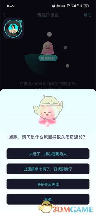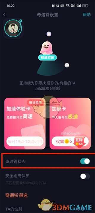 2、然后来到奇遇铃设置的页面中我们需要点击关闭的是【奇遇铃状态】后面的按钮;