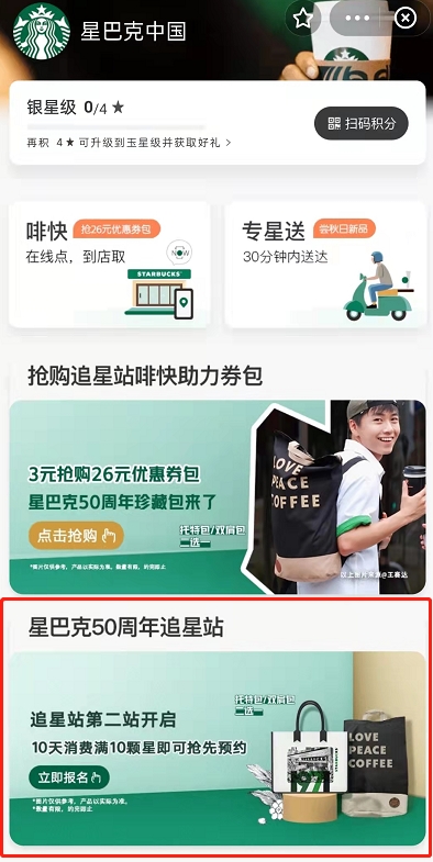 星巴克50周年珍藏包在什么地方领?购买指定食品可以获得双倍积星,获得足够积星后就可以兑换收藏包啦。,有很多小伙伴还不是很清楚,十大评测网小编下面给大家带来星巴克50周年参加追星站活动步骤介绍,感兴趣的朋友不要错过了哦,希望这篇文章能对大家有所帮助。