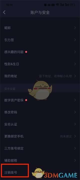 4、之后进入到账户与安全的页面中滑动到下方之后点击【注销账号】;