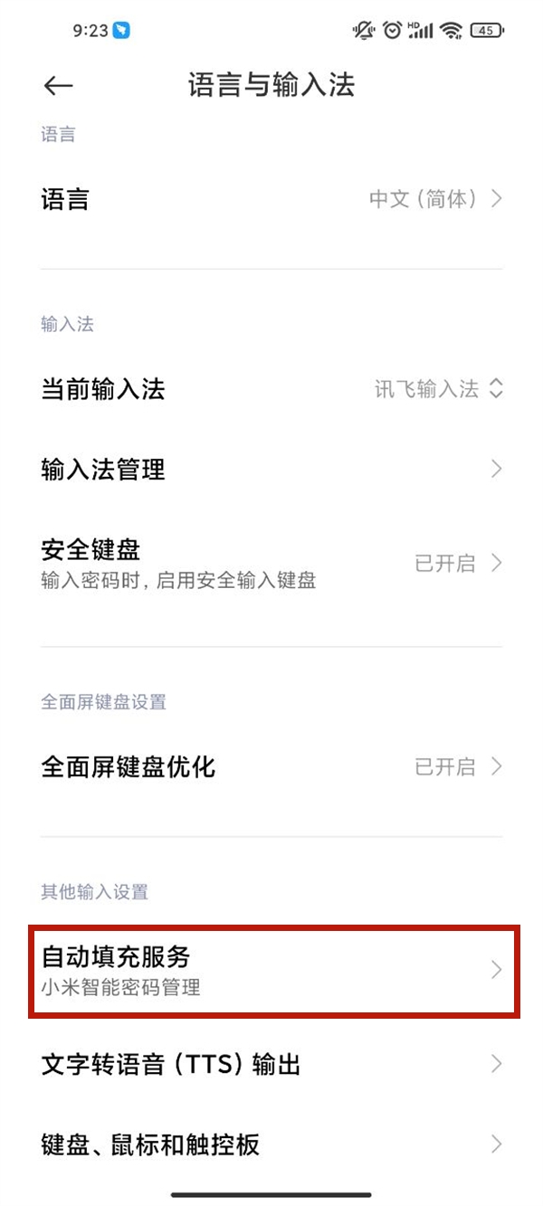 3、点击自动填充服务后将小米智能密码管理改为无即可。