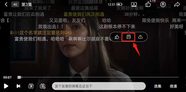 1、打开哔哩哔哩,点击进入视频,找到要复制的弹幕,点击一下。