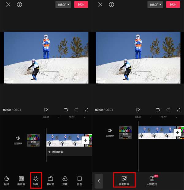 2、找到【特效】,点击【画面特效】。