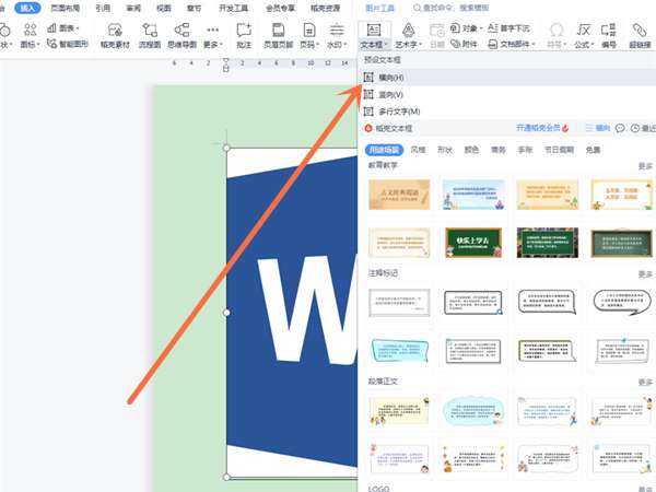 2、插入图片后,选择插入选项,点击文本框,再选择文本框方向。