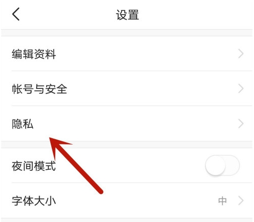 3、接着点击隐私选项。
