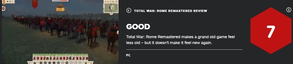 由Creative Assembly开发的策略游戏《罗马:全面战争》推出了重制版,今天这款游戏正式发售,外媒IGN也对该作进行了评测,并打出了7分的评价。IGN的评测者认为《罗马:全面战争重制版》在视觉上的升级非常明显,但是对于落后、陈旧的游戏玩法并未基于同样的关注。