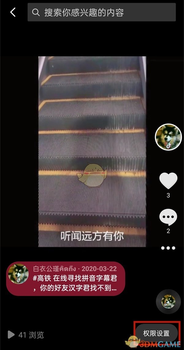2、在抖音视频界面,点击右下角的【权限设置】。