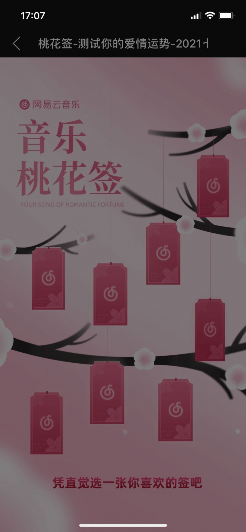 上述就是小编给大家带来的网易云音乐桃花签测试活动地址分享介绍了,小伙伴们还有不知道的赶紧一起来看看吧!希望能够帮助到大家,谢谢。