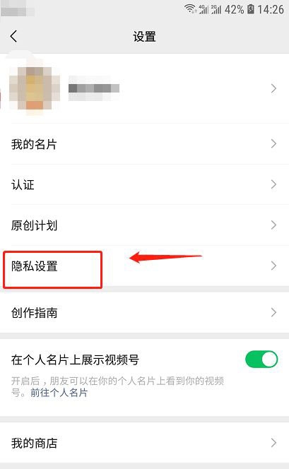 设置页面,点击“隐私设置”,进入视频号隐私设置页面。