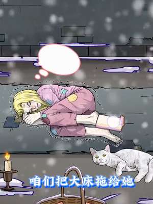 2、点击小女梦见的床移到小女孩身下,点击小女孩梦见的房子移出来为小女孩挡风,点击小女孩梦见的壁炉移到路灯的位置;