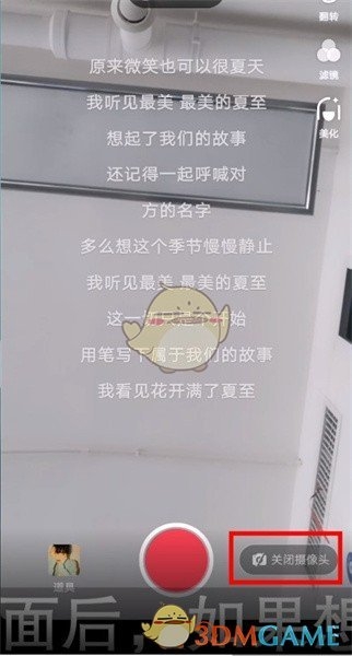 4、进入k歌页面后,如果想要不显示画面,那么点击关闭摄像头即可。接着点击红色按钮即可开始k歌。