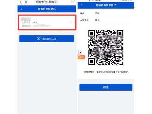 2、预登记成功后,在预登记页面会展示个人简易信息,点击即可生成二维码。