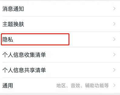 2、点击隐私。