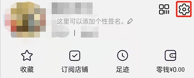 1、打开淘宝,点击我的页面,点击右上方设置图标。